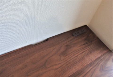 コンセント2個と配線用に壁側に欠き取りを設けています