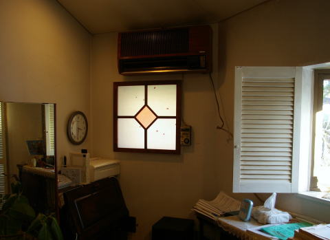 出窓のところ 内側にも扉をご希望 和紙にフィルムコーティングした障子にしました